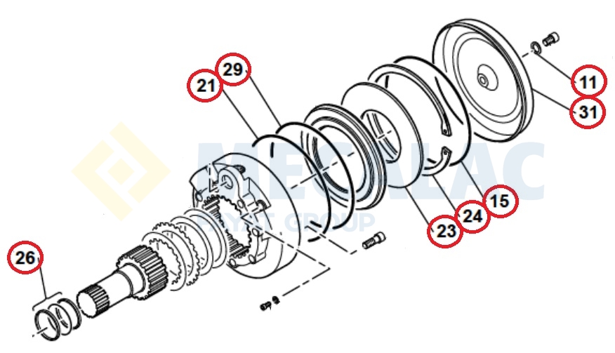 Zestaw części silnika obrotu MECALAC (12MSX/MXT/MTX)